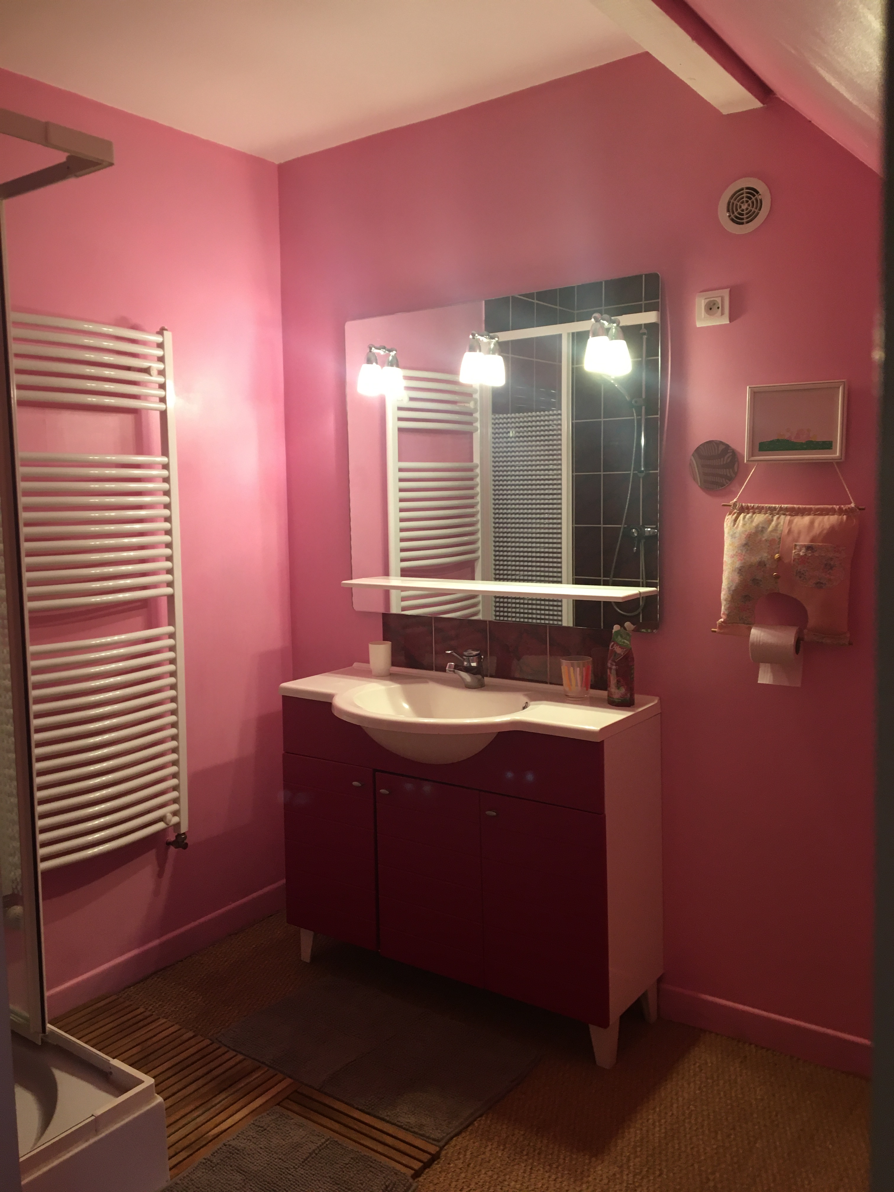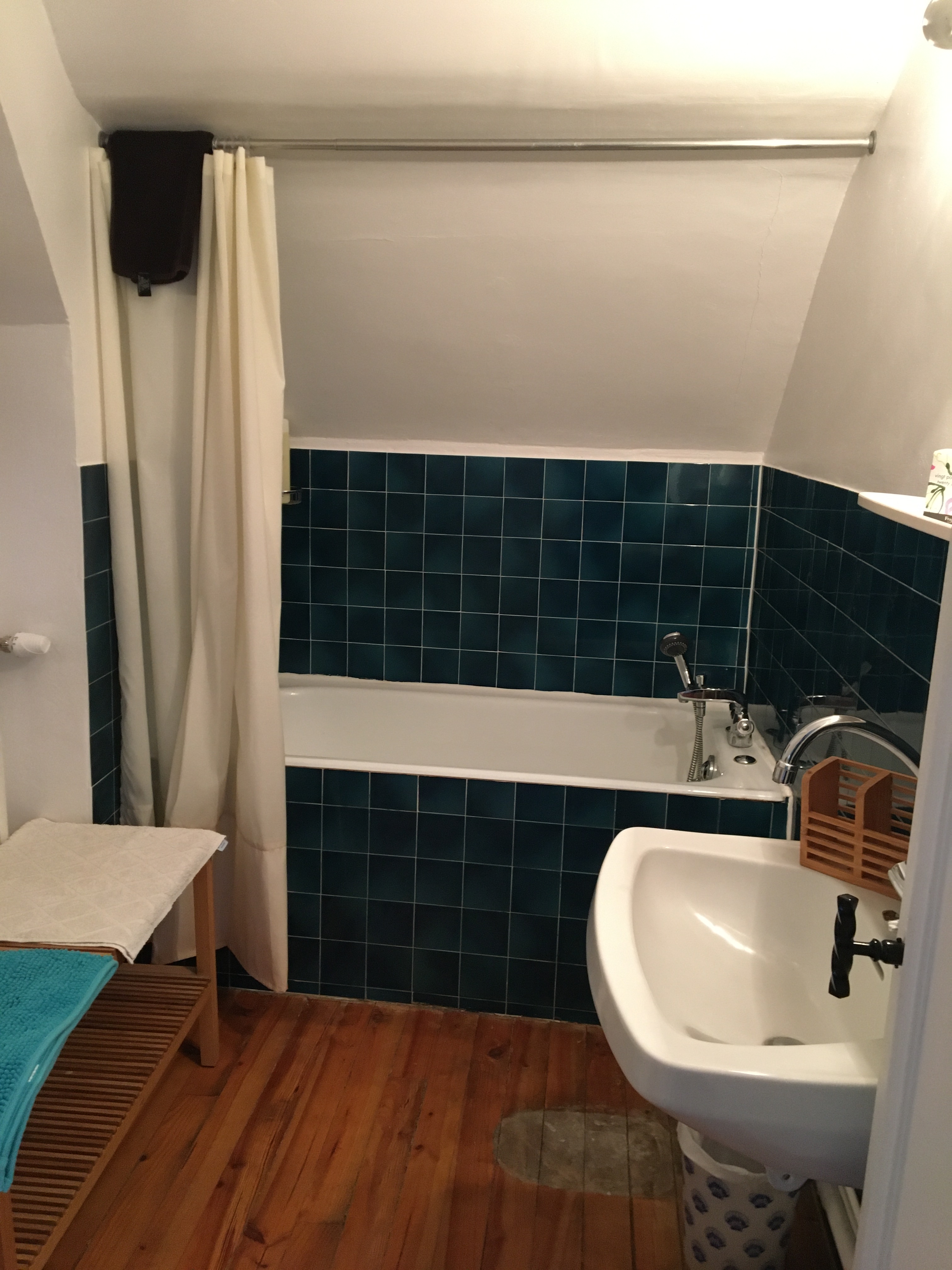 Une porte discrète au coin de la pièce mène aux toilettes avec lavabo.