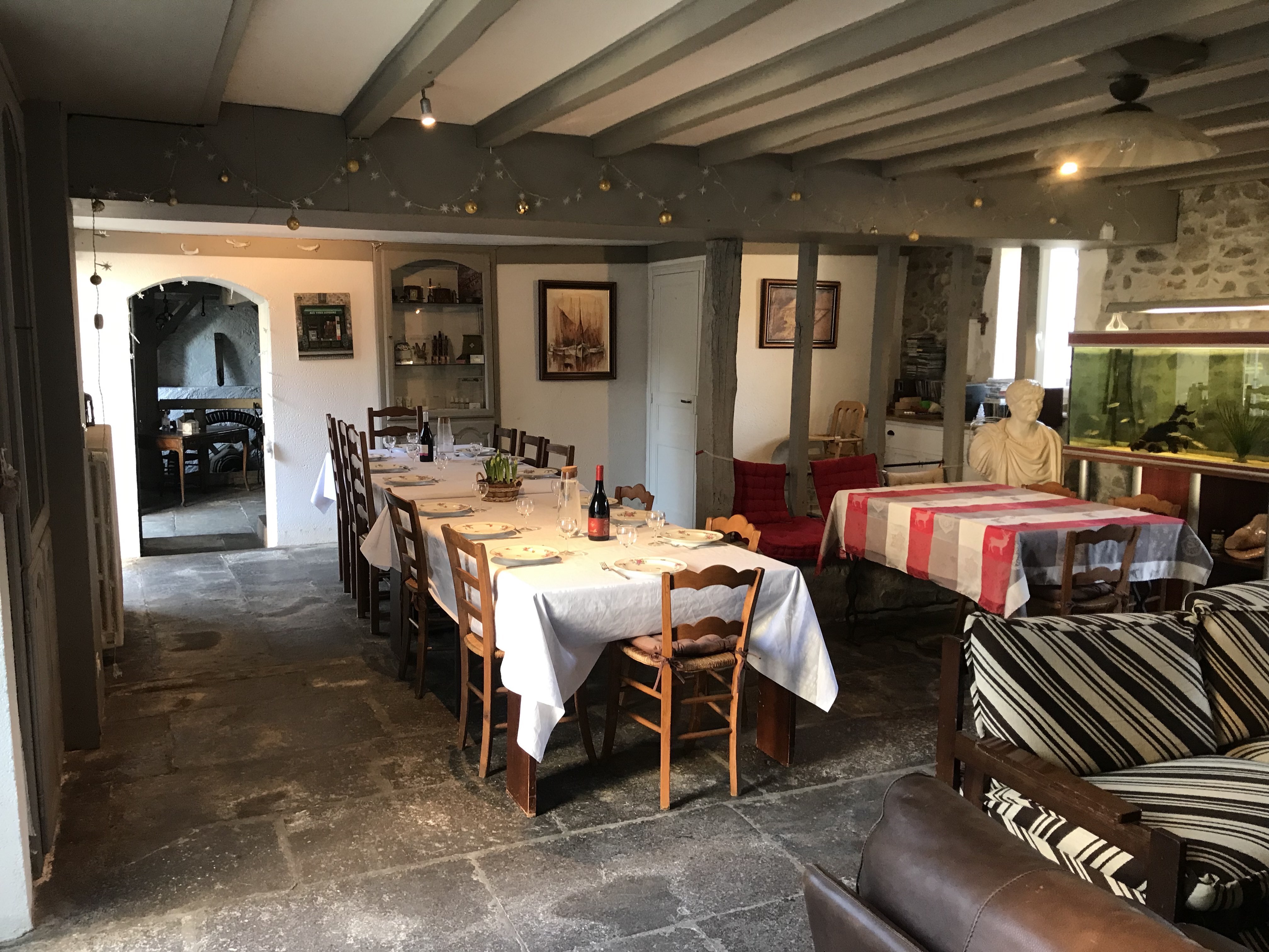 Cette grande salle fraîche en été, chaude en hiver avec sa cheminée fonctionnelle tire son nom des dalles de pierre de Volvic au sol. C’est une pièce d’environ 50m2 aux configurations multiples qui accueillera vos repas, vos temps de jeux à l’intérieur ou de repos et discussions dans la partie salon