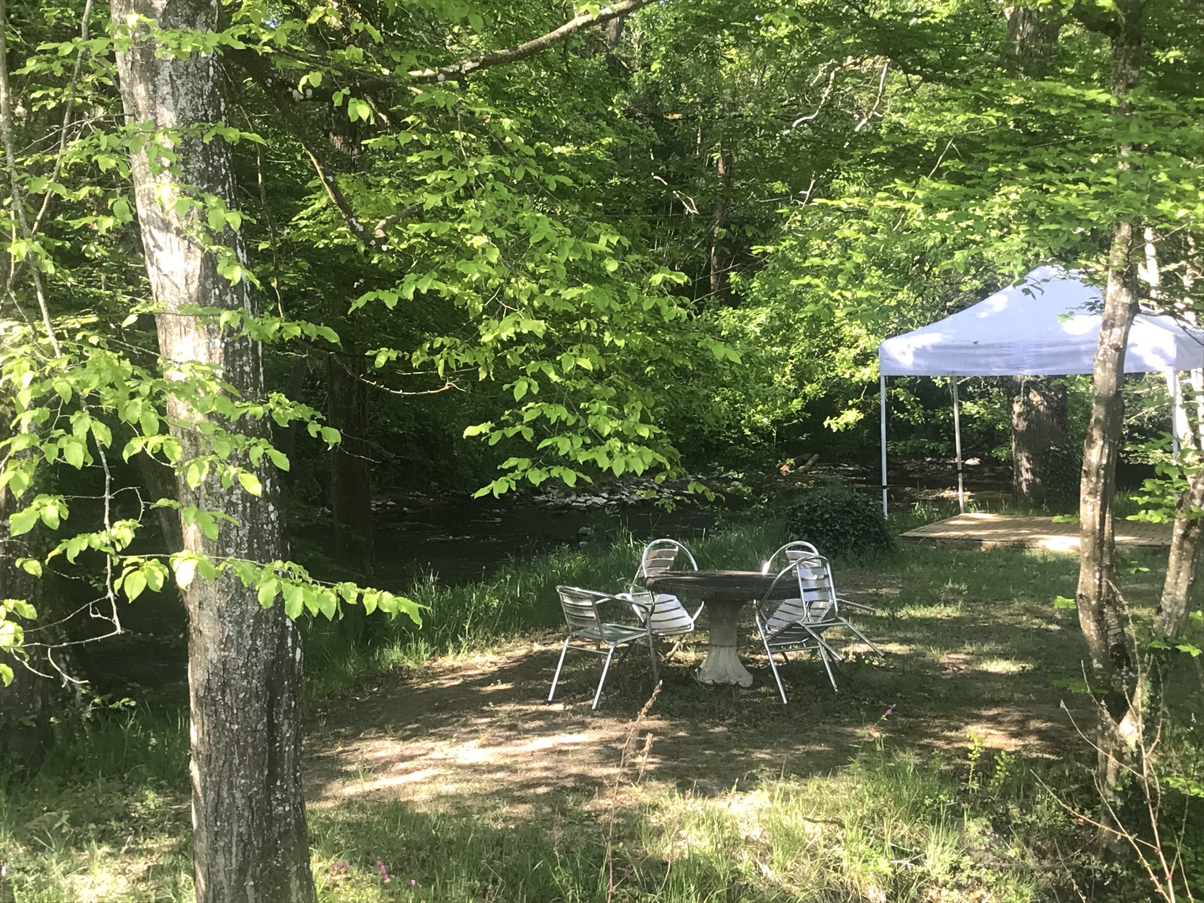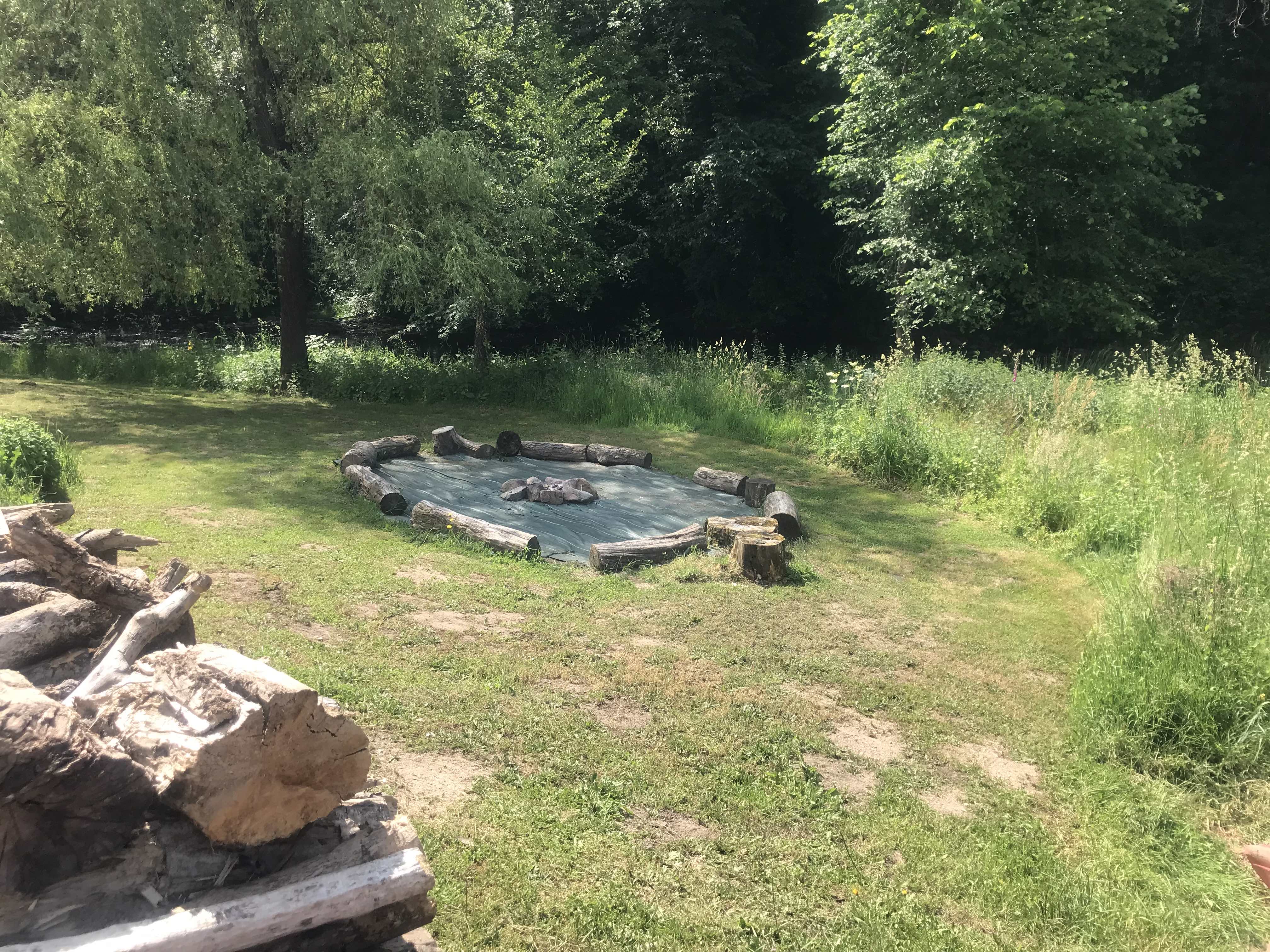 Entre le gîte et la rivière, Fred, ancien scout, a installé un feu de camp. Soirées chamallow ou chants en observant les étoiles, tout est possible sauf par temps trop sec.