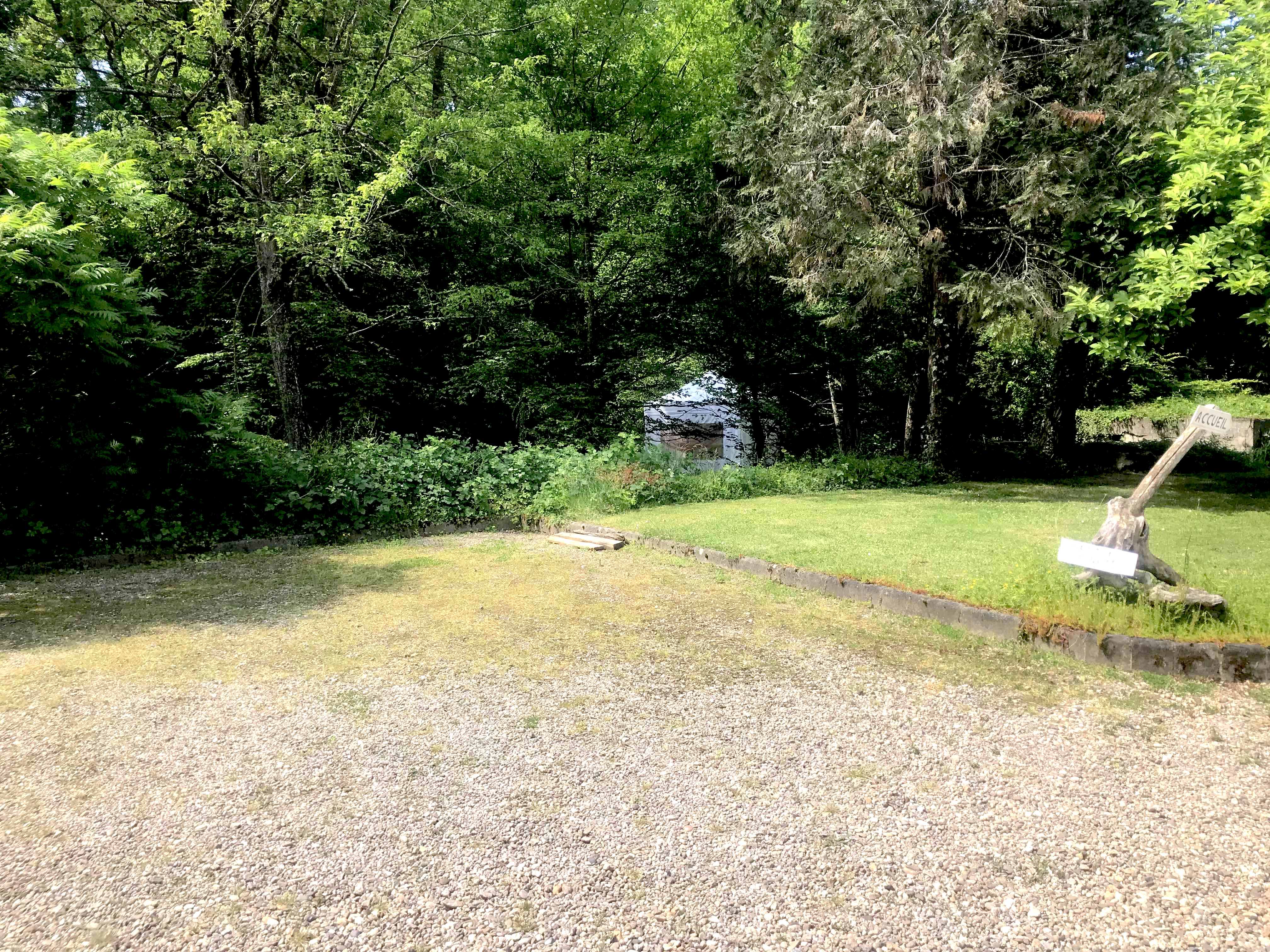 Un si beau site naturel ne serait pas ce qu’il est sans lui. Nous avons aménagé un parking pour tous les véhicules à l’entrée de la propriété et à l’abri des regards. Ce parking peut accueillir une quinzaine de voitures.