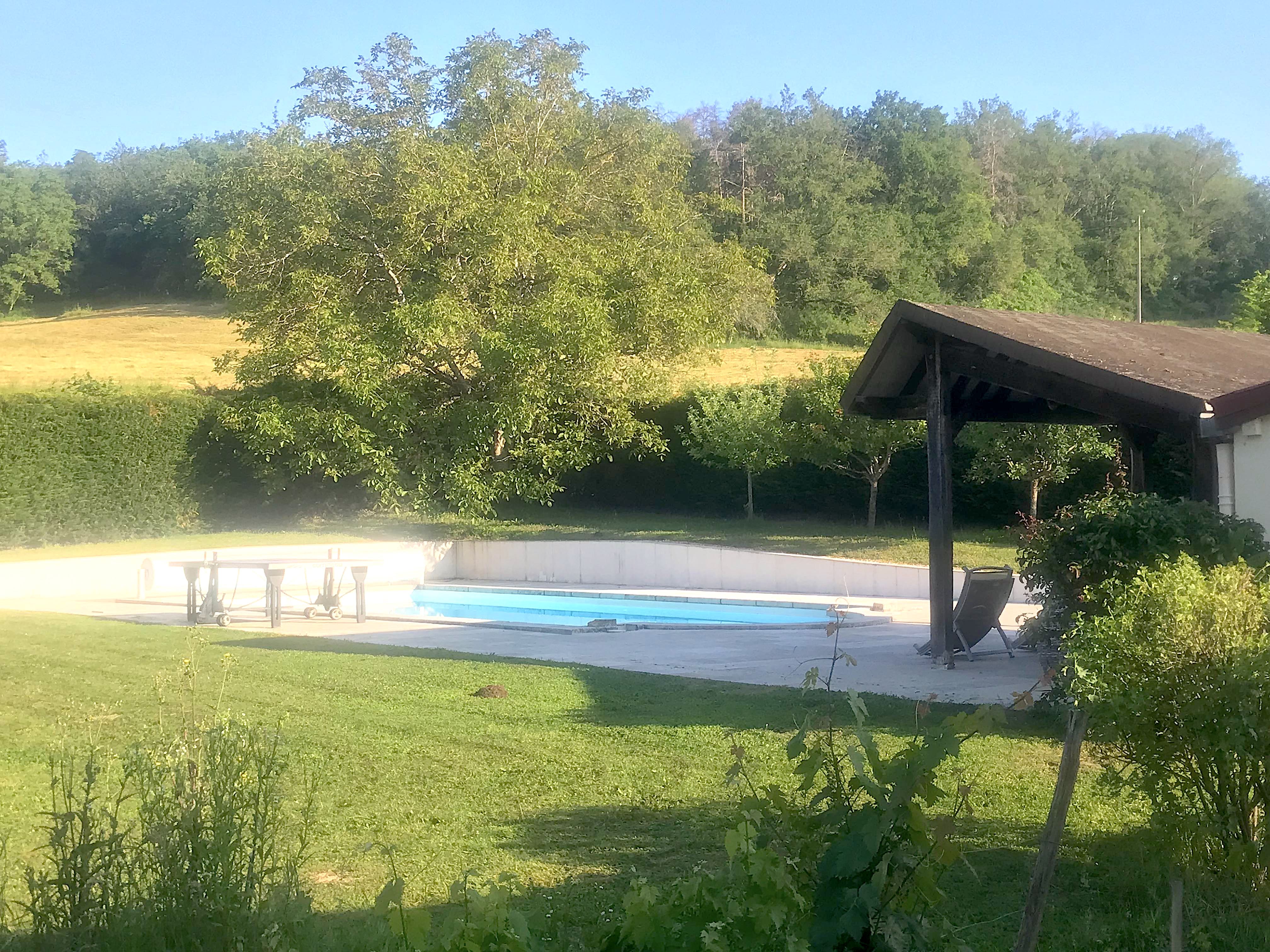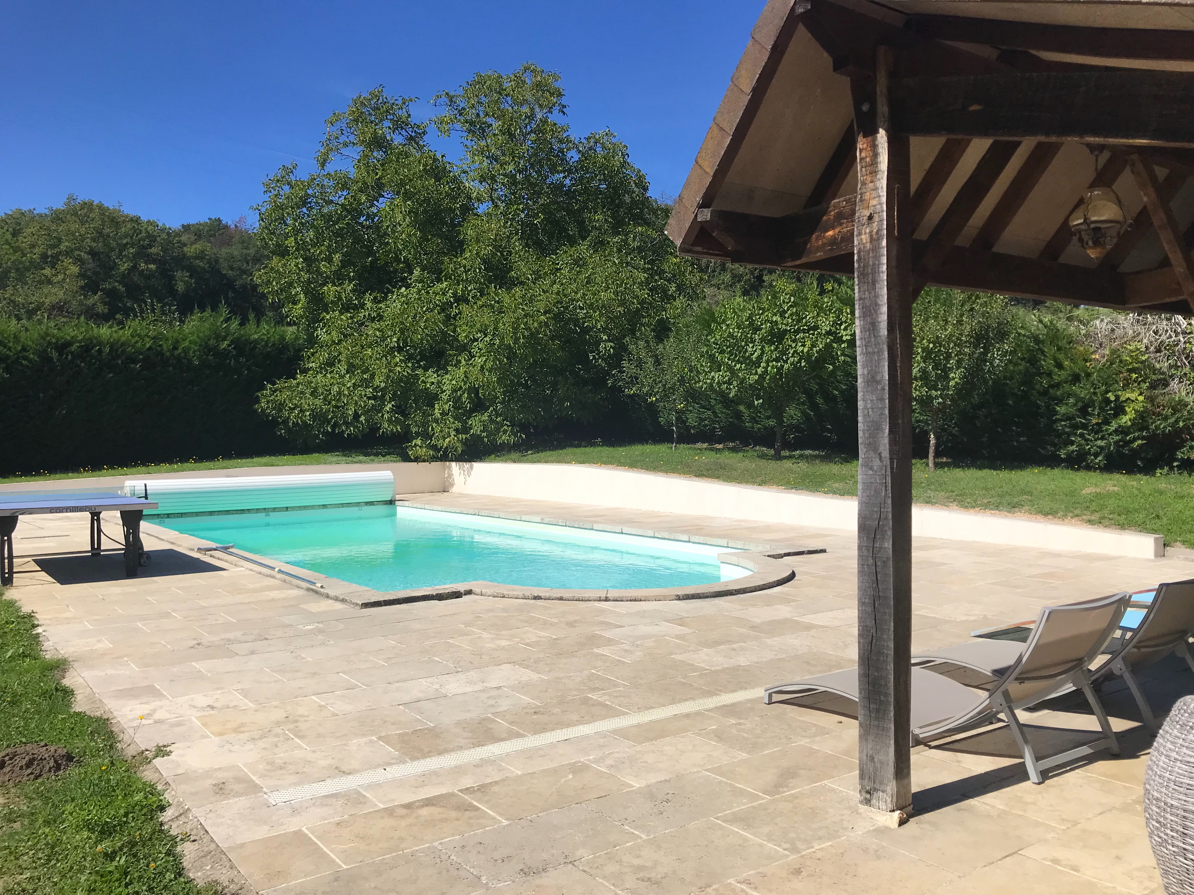 D’une taille de 5x12m, avec un accès par escalier, la piscine, non chauffée, est ouverte pour la belle saison. Sécurisée par un rideau rigide et entourée d’une belle terrasse en pierre, c’est un lieu de repos idéal. Chacun pourra choisir de se prélasser sur les chaises longues, ou de lire un livre sur le salon d’extérieur, au soleil ou à l’abri du pool house