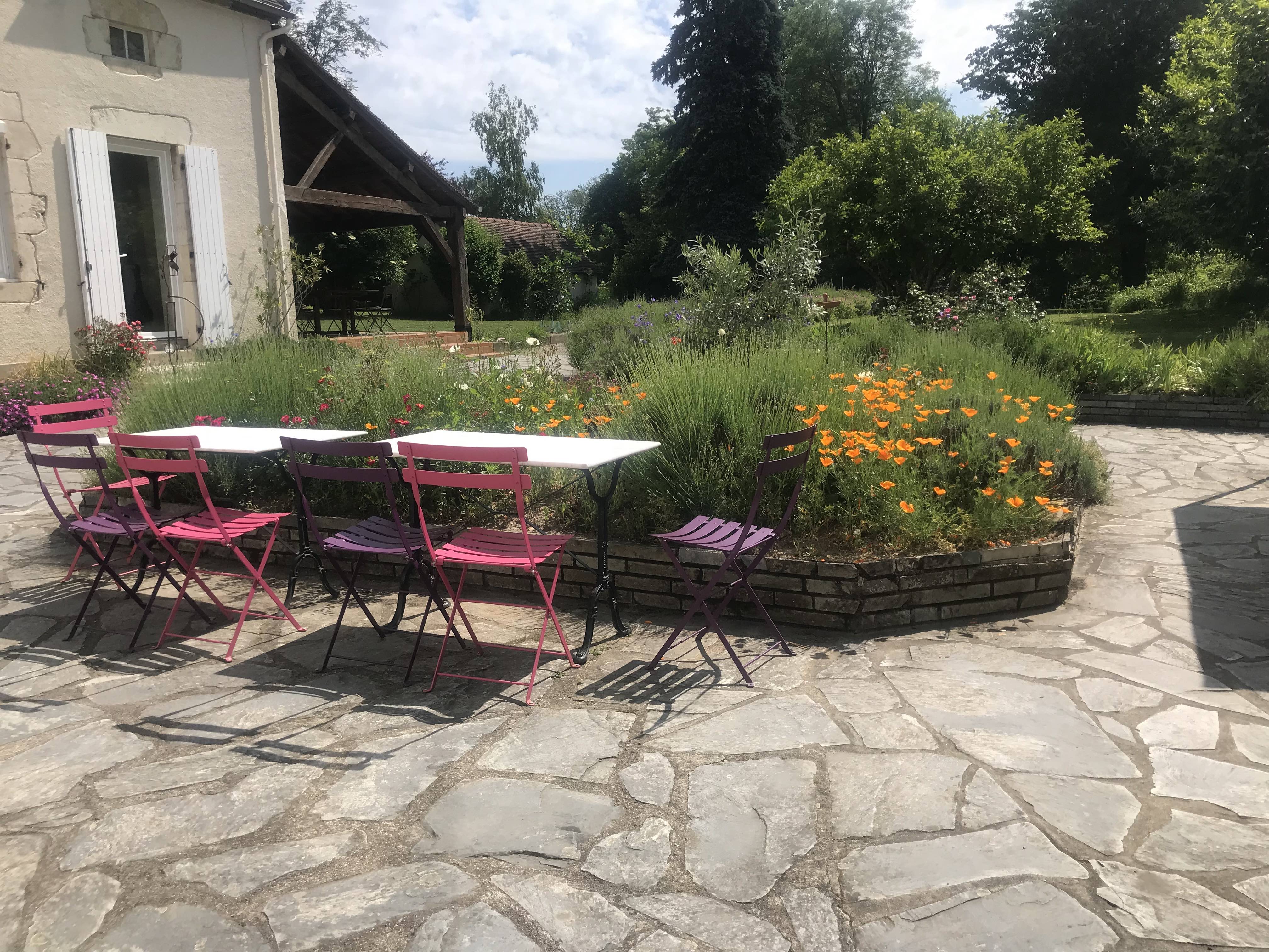 Le gîte est équipé d’une multitude de petites tables et chaises colorées qui vous permettront d’organiser vos repas à l’extérieur comme vous le souhaitez: petit-déjeuner au soleil levant sur la terrasse, déjeuner à l’ombre des chênes et dîner à côté du barbecue… à vous de voir!