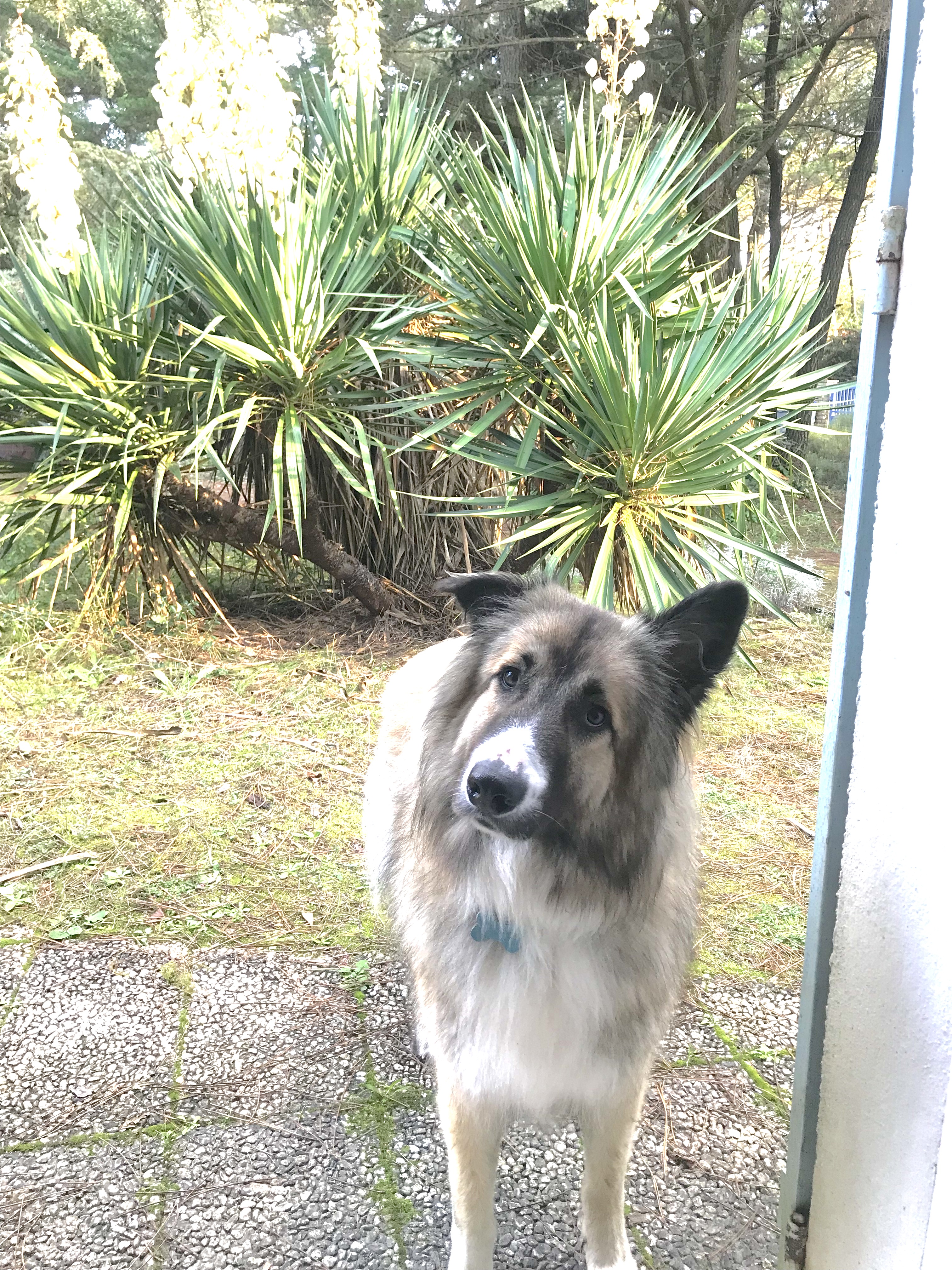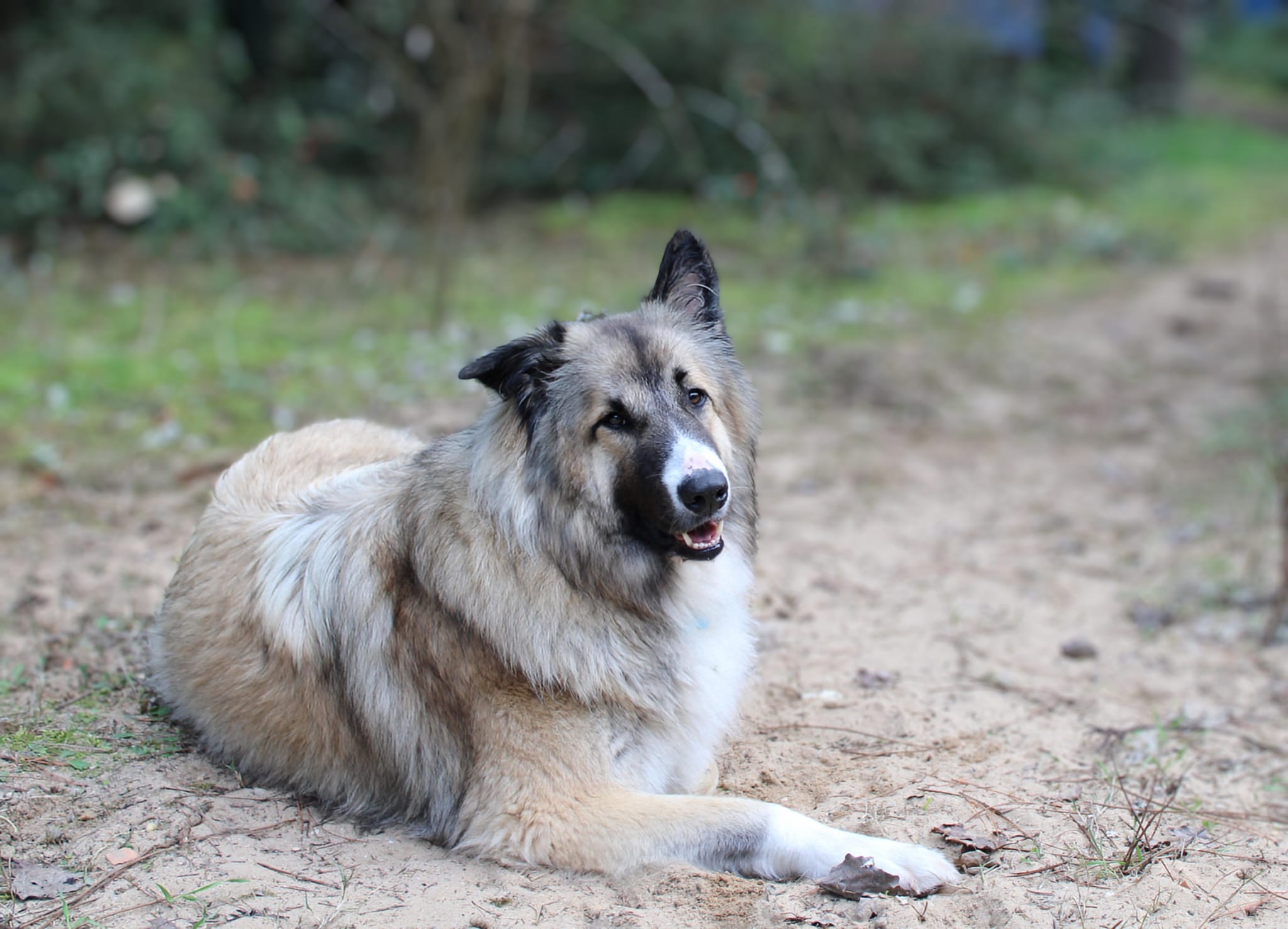 Croisé entre un Berger Belge et un Montagne des Pyrennées, c’est un gros nounours très amical avec tous qui aime les calins et ne manquera pas de vous faire rire avec ses mimiques de chien gentil!